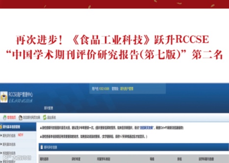 4月,成功举办第七届食品科技创新论坛,且跃居中国学术期刊评价研究报告RCCSE数据库食品类第二名,等级升为A+,并被美国乌利希期刊指南收录;