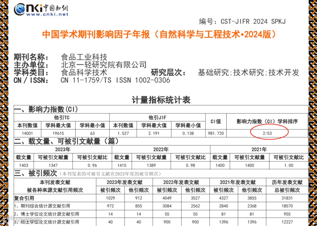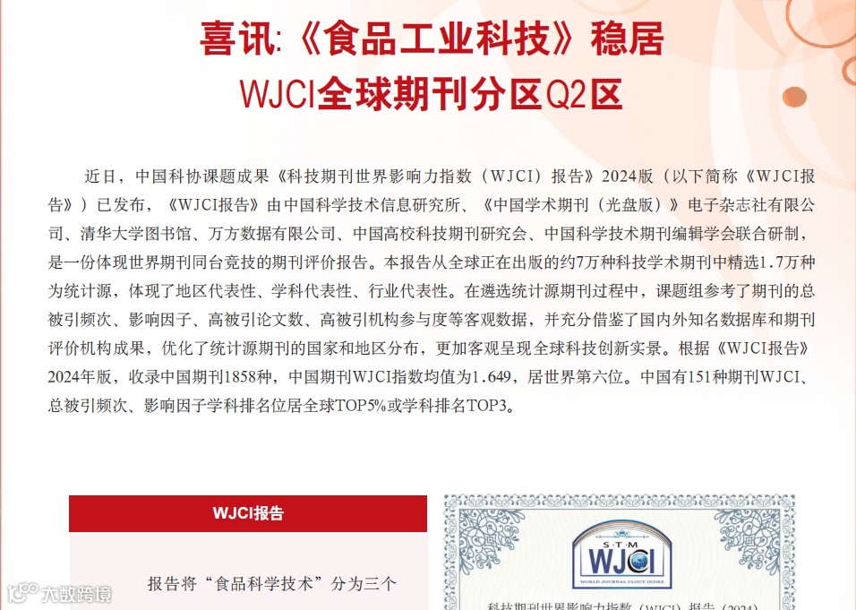 2024年,是《食品工业科技》跨越式发展的里程碑年度: