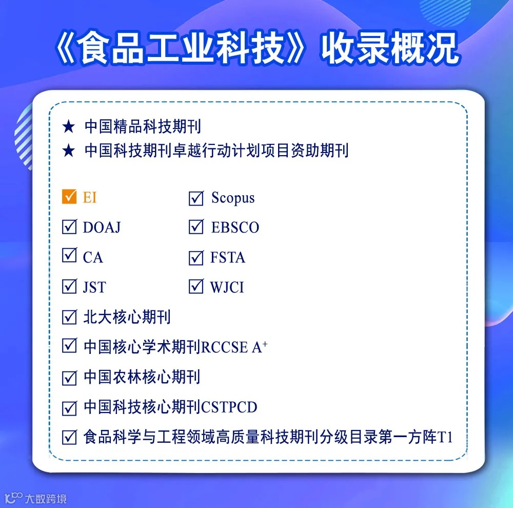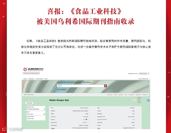 1月,顺利被国际知名数据库EI收录,且跃居北大核心食品工业类第二名;
