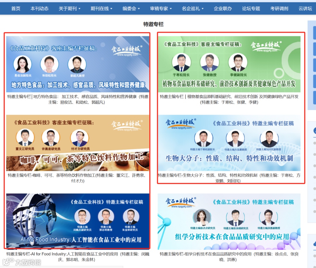 《食品工业科技》特邀主编专栏征稿