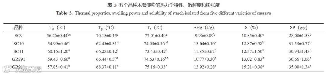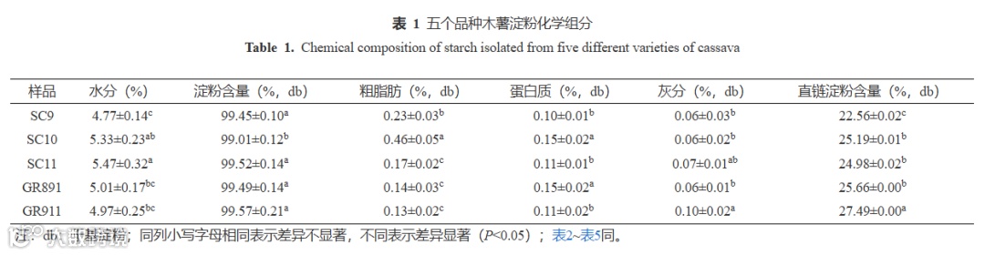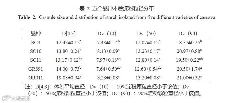 吉林农业大学食品科学与工程学院、中国热带农业科学院香料饮料研究所、国家重要热带作物工程技术研究中心、海南省特色热带作物适宜性加工与品质控制重点实验室的王金梦、张思维、赵康云、陈小爱、张彦军等人介绍了木薯淀粉的理化和结构性质,以及不同品种木薯淀粉之间的差异。前人主要集中在粒径、颗粒形态、糊化特性、热力学特性等方面进行研究,但国内关于不同品种木薯淀粉的理化和结构性质的研究尚缺乏系统报道。本文选取华南9号、华南10号、华南11号、桂热891和桂热911五个不同品种木薯为原料,提取淀粉,对比五种木薯淀粉在颗粒形态、粒径、热力学特性、有序结构等理化和结构性质的差异,为木薯育种、新品种开发利用和木薯淀粉在食品工业和非食品工业的应用提供理论依据。