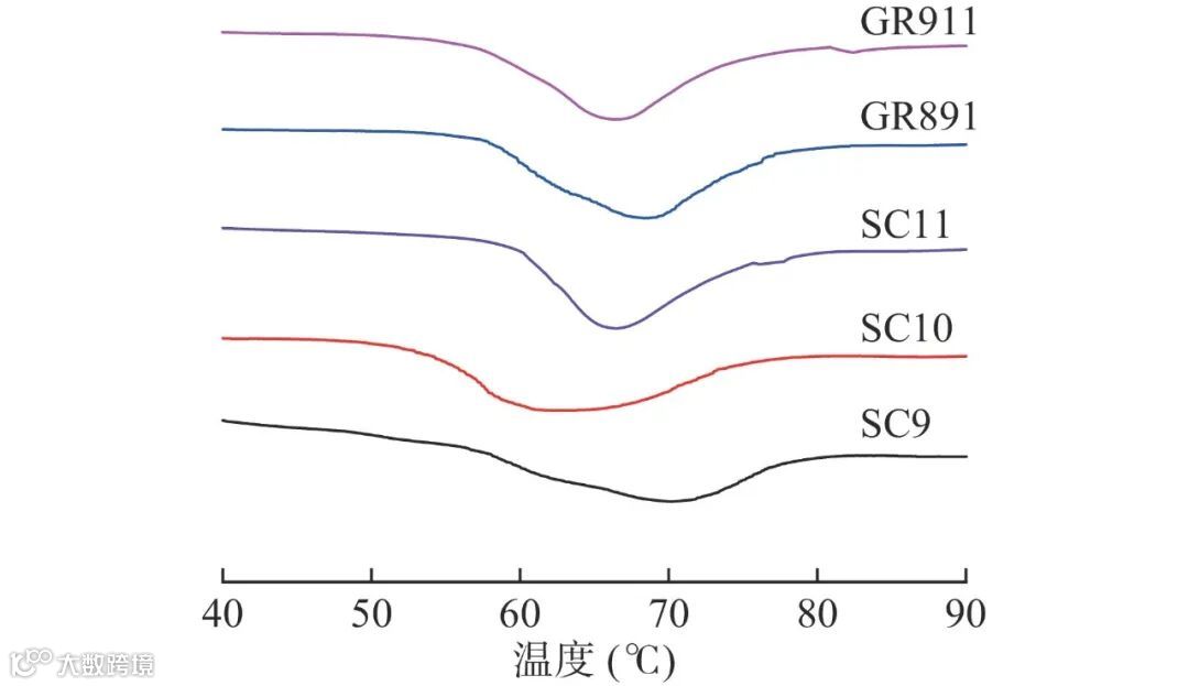 图 2 五个品种木薯淀粉热力学特性