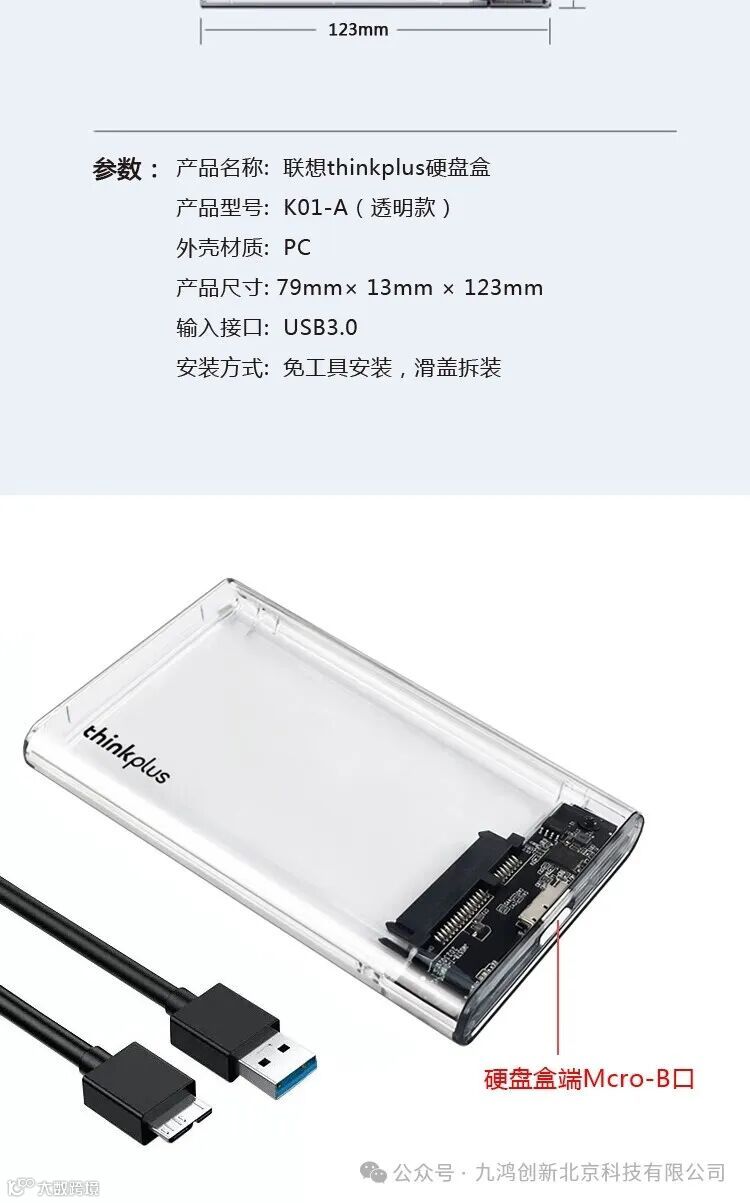 联想(Lenovo) 移动硬盘盒 2.5英寸USB3.0 SATA接口串口笔记本台式外置外接壳 K01-A【SATA接口】塑壳版(60PCS/箱)