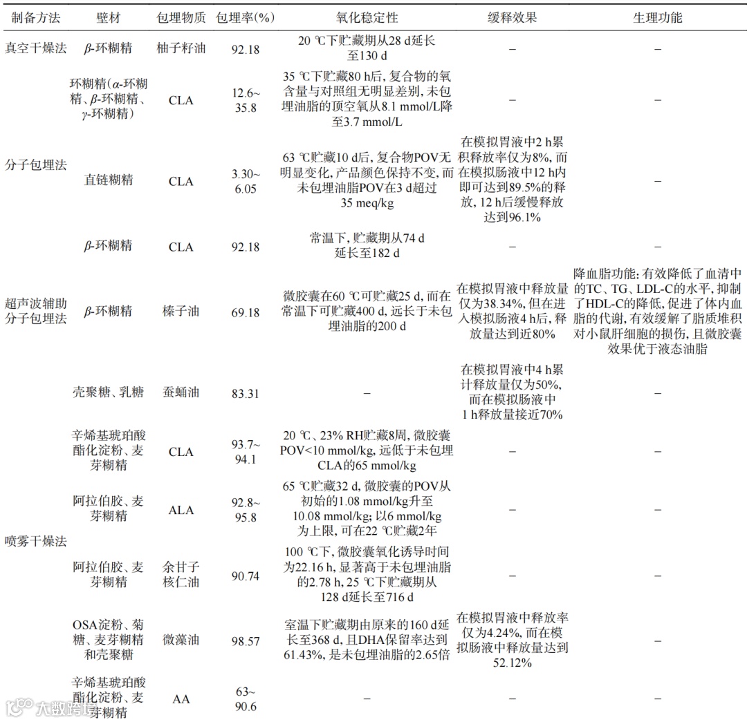 微胶囊技术在不饱和脂肪酸中的研究现状