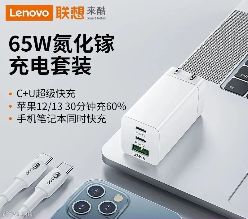 导读:联想来酷 氮化镓65W笔记本电脑电源适配器
