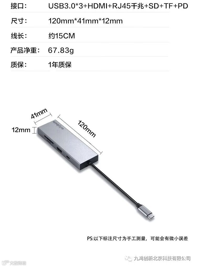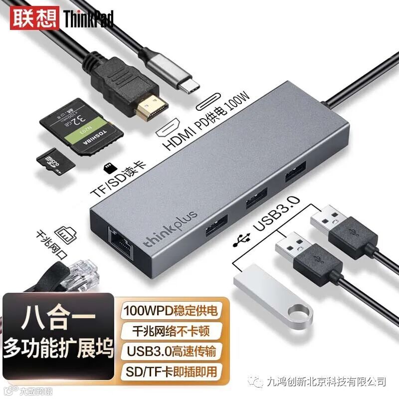 铝合金材质强效散热,3口USB扩展,RJ45千兆网口转换,HDMI高清4K转接,SD/TF卡读取,PD100W供电!
