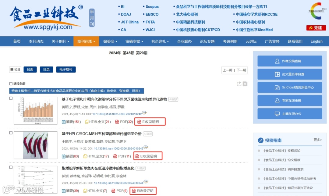近日,爱思唯尔更新了EI数据库的期刊列表,各位作者可以于《食品工业科技》官网☞(www.spgykj.com)下载源列表,也可以登录EI官网☞(https://www.engineeringvillage.com/)下载。