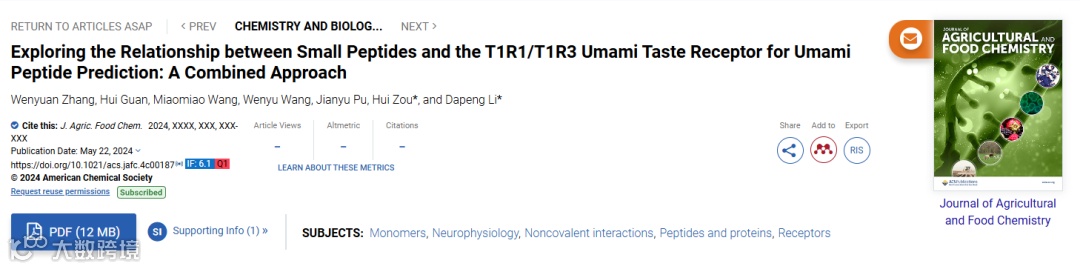 JAFC | 山东农业大学李大鹏教授:探索小肽与T1R1/T1R3鲜味受体之间的关系以用于鲜味肽预测:一种组合方法