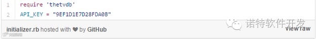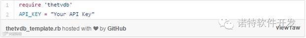 将你的API密钥放在初始化的thetvdb.rb文件里。如果你还没有API密钥,可以使用我这个。