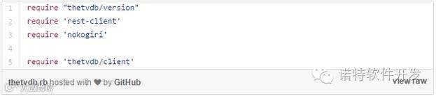 在lib/thetvdb.rb的文件里调用这两个依赖包。注意,我们需要指定gem版本。