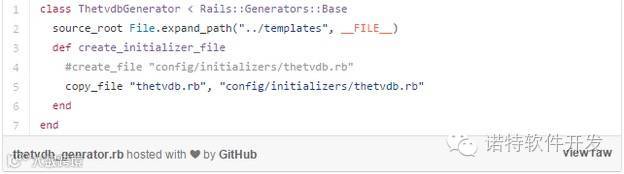 第二行source_root指向我们存放的generator模板的地方。在generators目录下创建templates目录,并在这个目录下创建一个thetvdb.rb文件,代码如下。