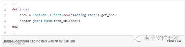 在某些controller的action中,我通过调用Thetvdb的get_show方法搜索我最喜爱的电视节目“极速前进”。