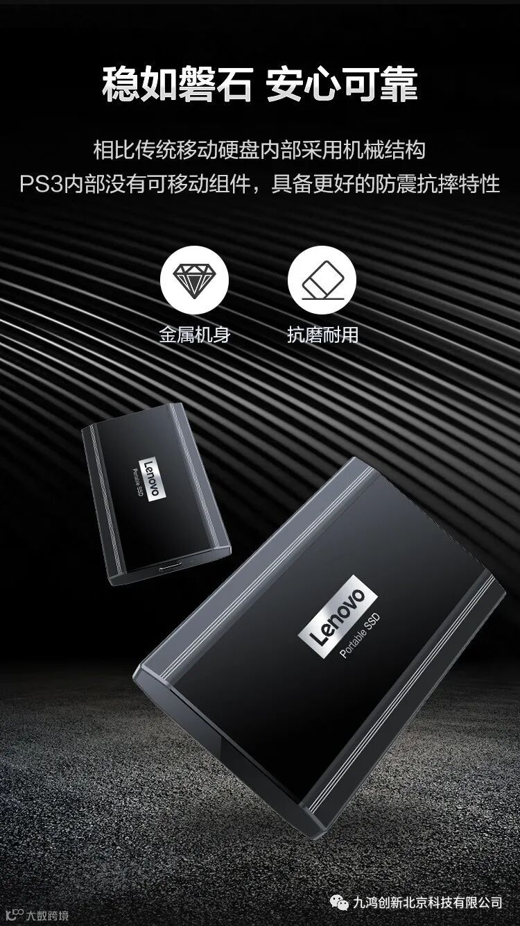 导读:联想Type-c移动固态硬盘PS3(256G 512G 1T )金属外壳名片大小,高速传输防震抗摔