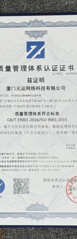 爆竹声中一岁除,春风送暖入屠苏!过去一年里,元运迁入新址,拥有了更广阔的发展空间;同时正式启动数字化展厅的建设,全力塑造一个面向未来的互动体验场;更值得骄傲的是,在过去的耕耘努力下,元运科技于2024年初喜获“国家高新技术企业”权威认定,并于2025年正式通过ISO9001质量管理体系认证,同时公司新增了多项软件著作权。这些成果,标志着我们迈入了技术创新与品质管控并重的新阶段。