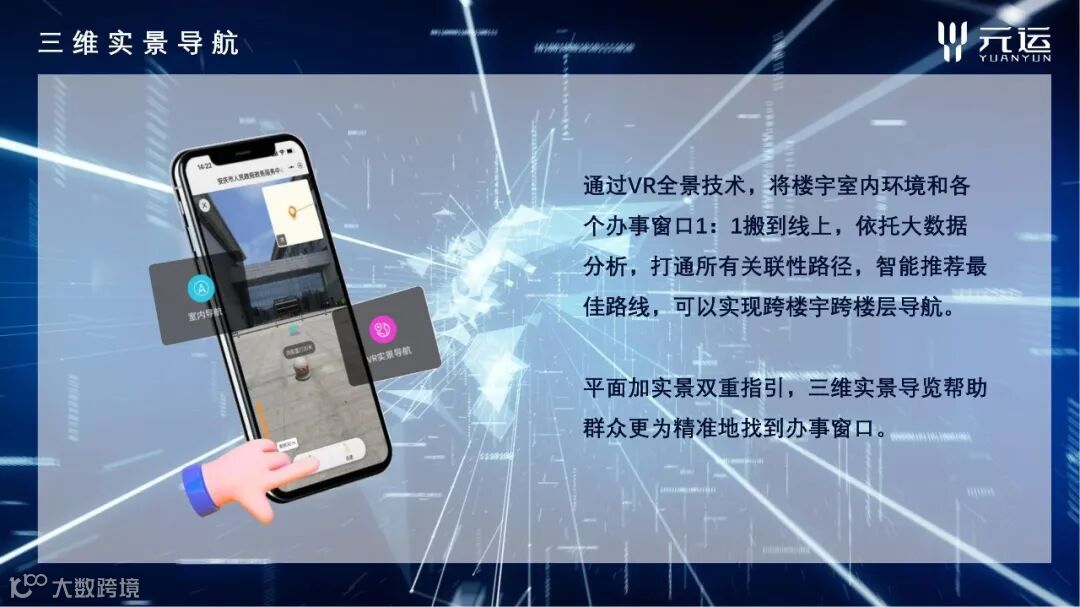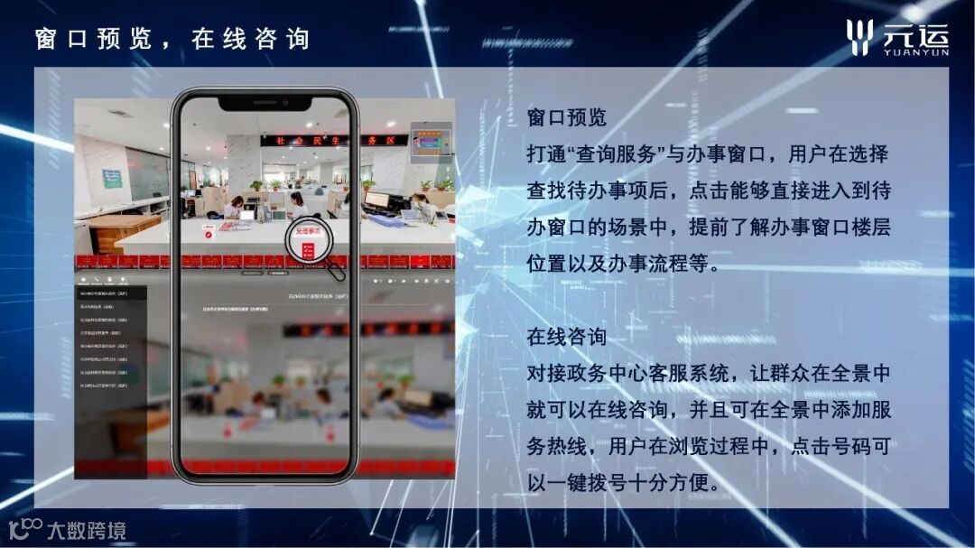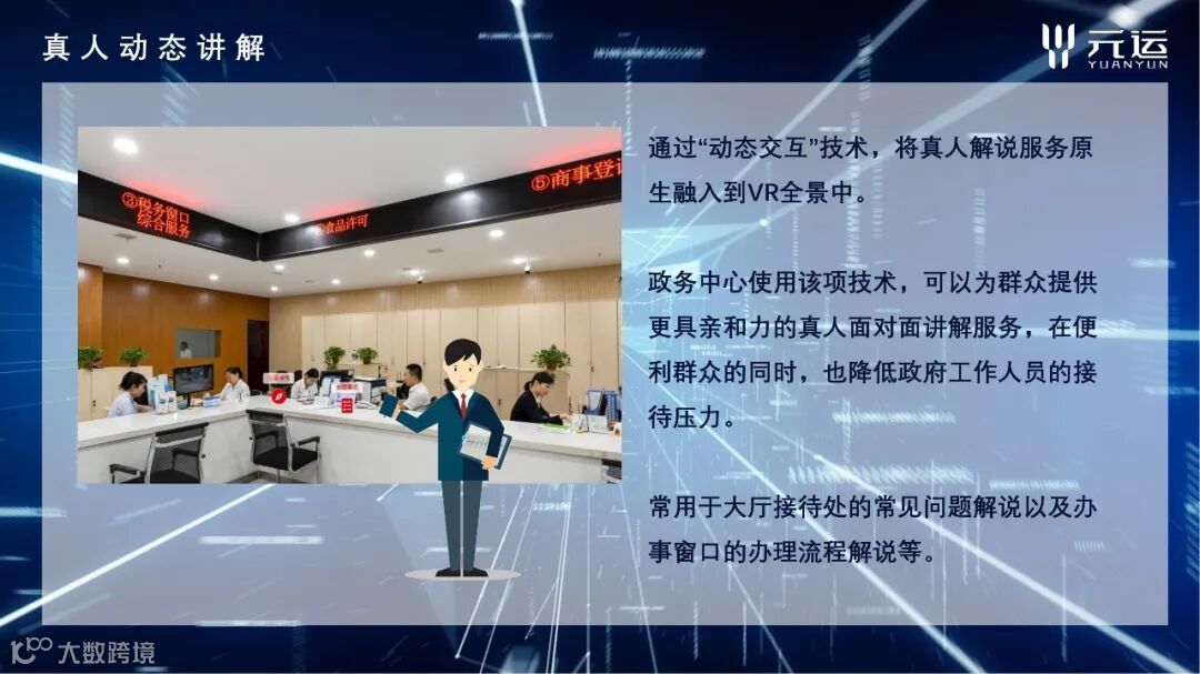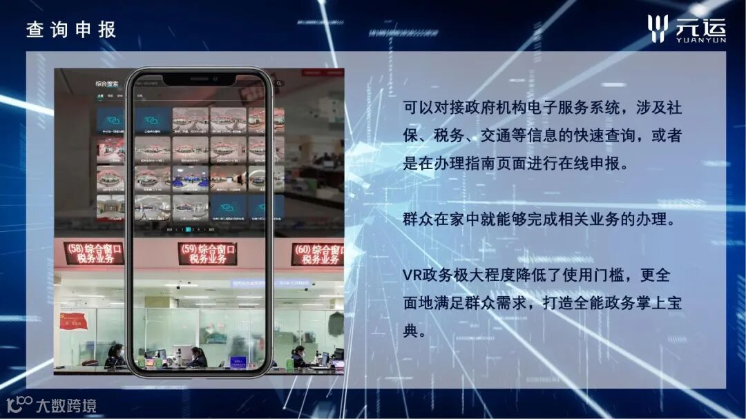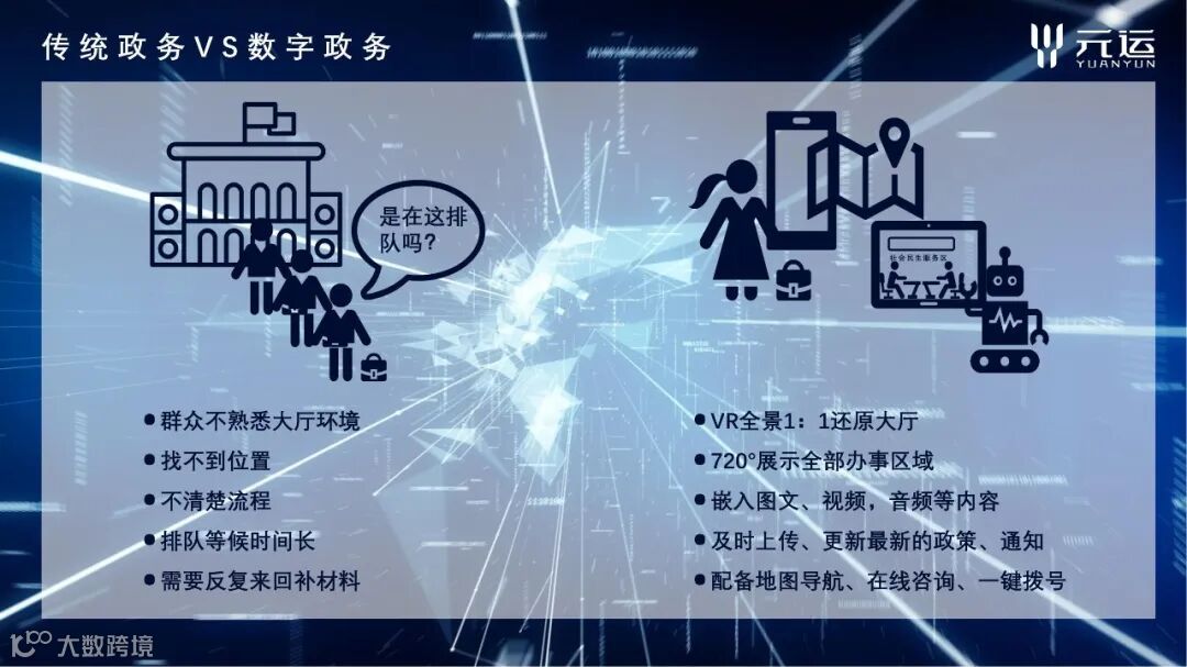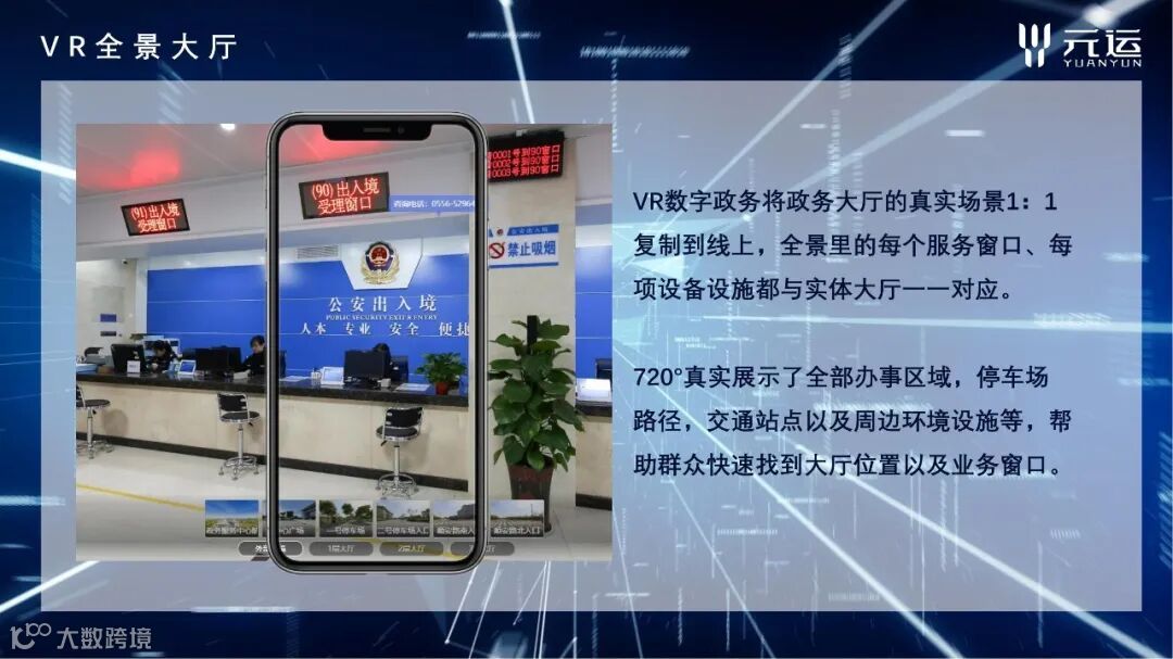 数字政务采用VR全景+的解决方案,以“数据多跑腿,群众少跑路”为建设核心,实现线上线下无缝对接!