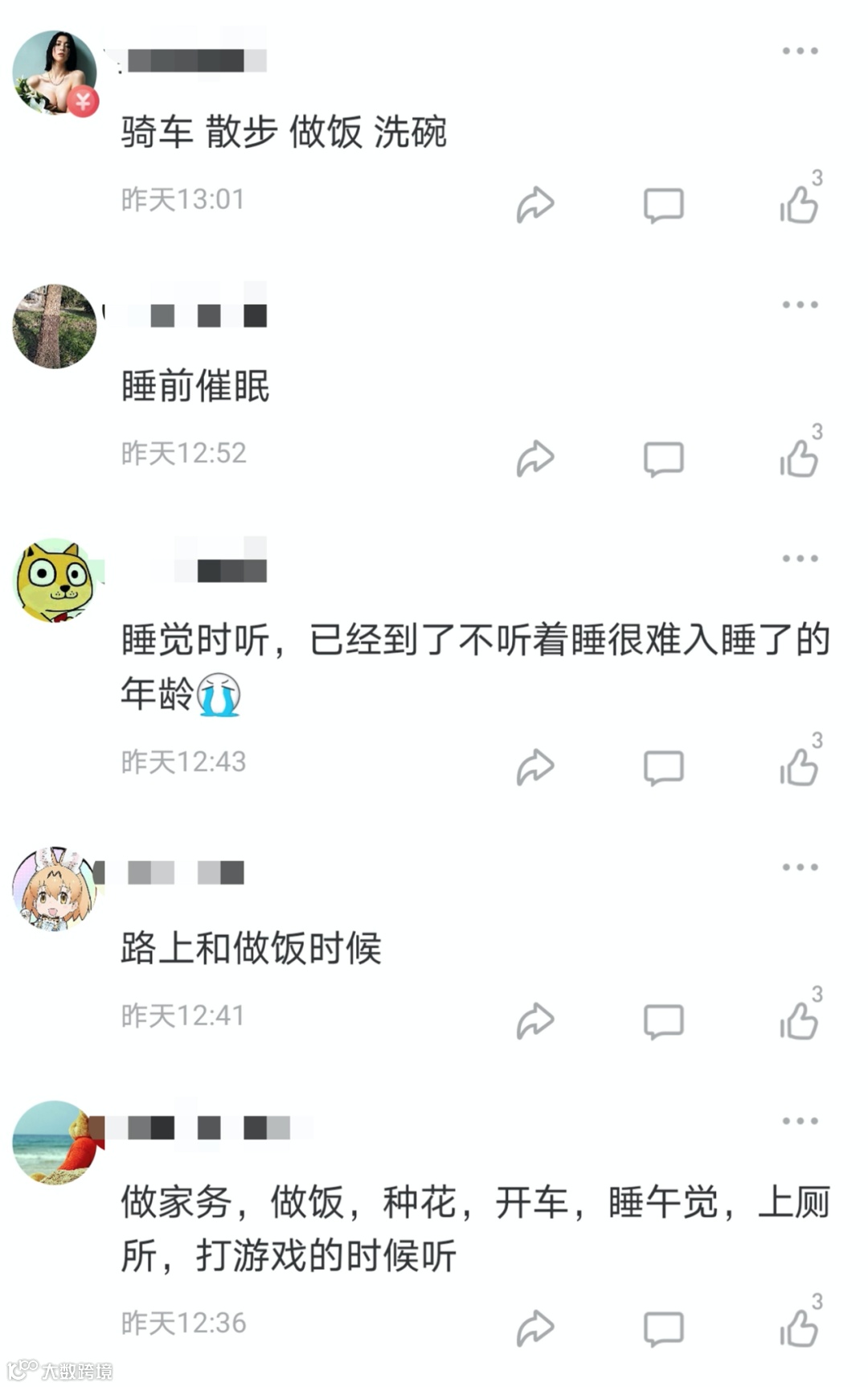 不少网友表示,自己是喜马拉雅的重度使用者,会在睡觉、跑步、洗碗等各种碎片或者休闲时间使用喜马拉雅听书。