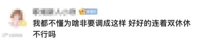 不少网友发出这样的疑问,调休后虽然名义上也是三天假,但9月14日却要上班补班,再加上国庆假期调休,有5周要调休,让人记不清的节奏。