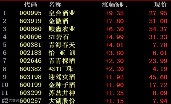 上午部分涨幅居前白酒股