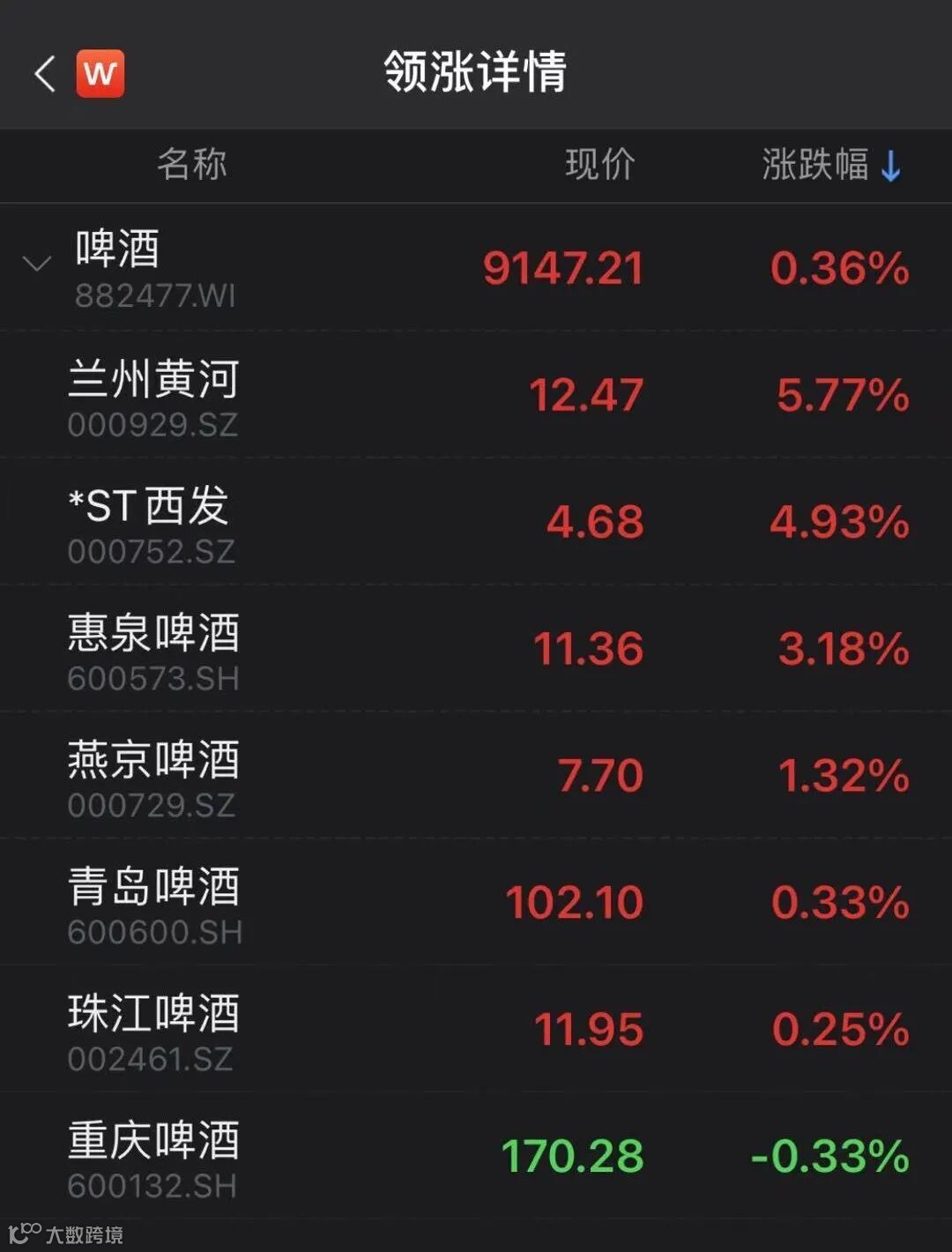 此外,啤酒板块表现同样强势,其中,兰州黄河上涨5.77%,惠泉啤酒上涨3.18%。