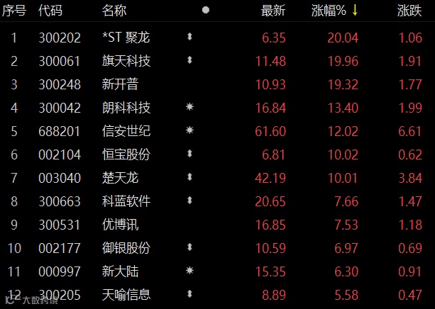 5月10日,受数字人民币接入支付宝消息影响,数字货币板块又双叒叕集体上涨,其中*ST聚龙、旗天科技、恒宝股份、楚天龙涨停。