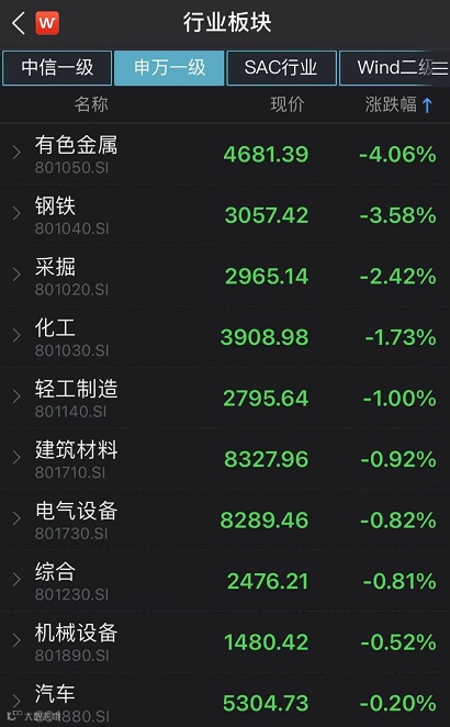 今日跌幅居前申万一级行业