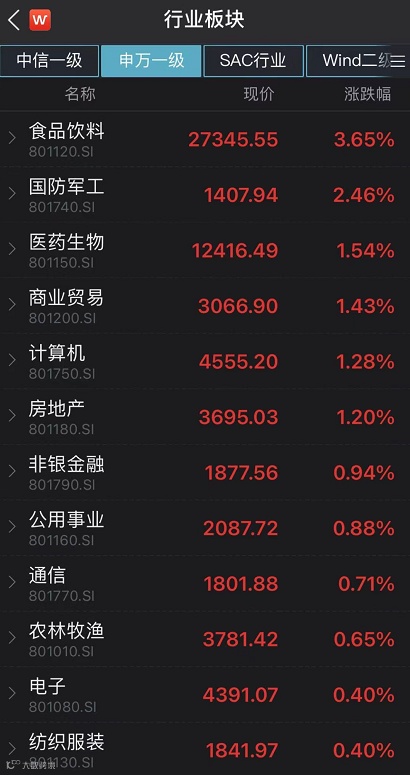 今日涨幅居前申万一级行业