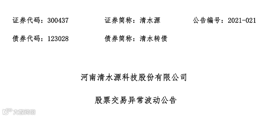 4月14日晚,清水源和海峡环保都发布了股票交易异常波动公告。