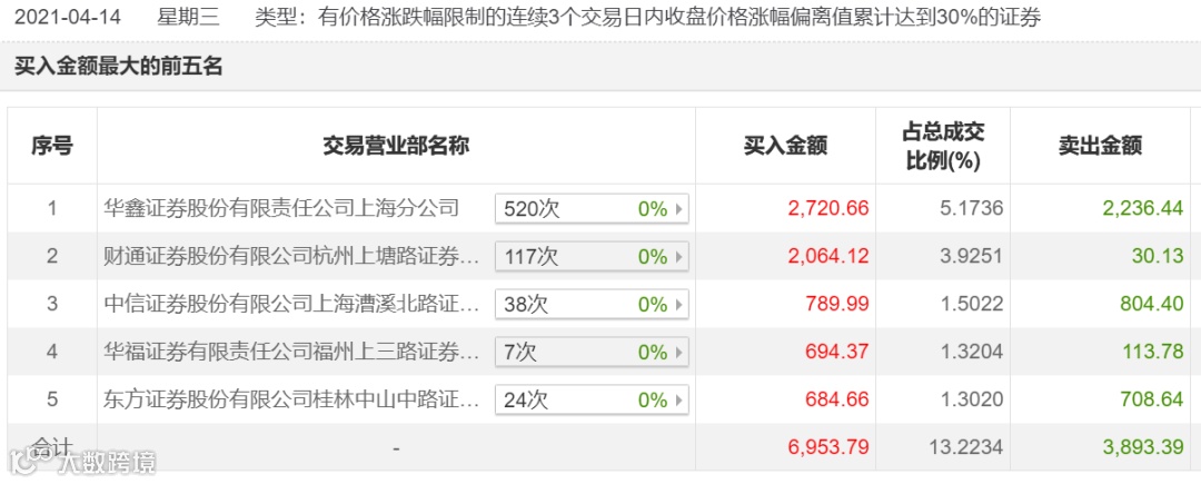 华鑫证券上海分公司席位极为活跃。4月13日,该席位买入南方汇通1532万元。4月14日,该席位买入海峡环保706万元左右。