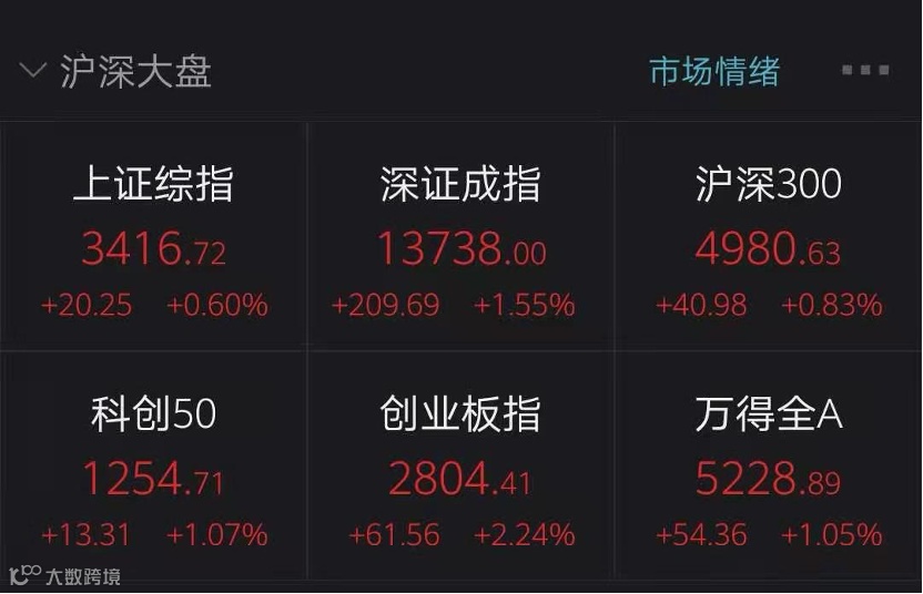 4月14日,A股三大指数尾盘悉数收涨。