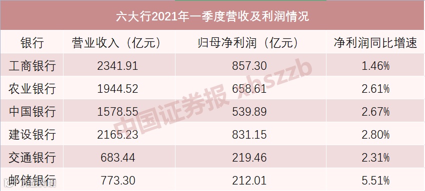 从净利润增速来看,邮储银行增速最快,一季度实现净利润212.01亿元,同比增长5.51%;除此之外,建设银行、中国银行、农业银行和交通银行净利润增速均超过2%。