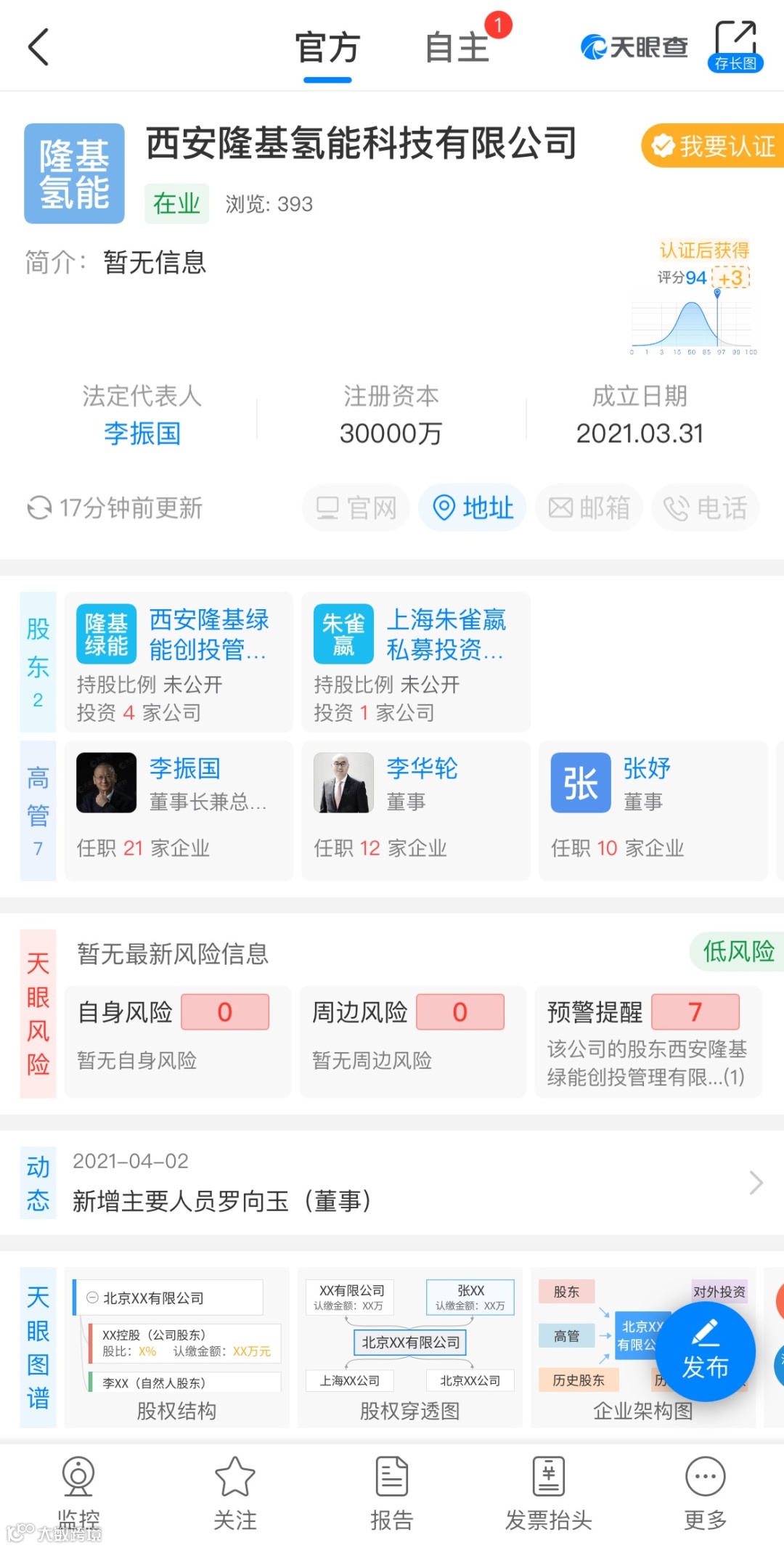 天眼查显示,此次新成立的合资公司注册资本3亿元,隆基股份创始人李振国担任董事长、总经理,朱雀投资董事长李华轮担任董事。
