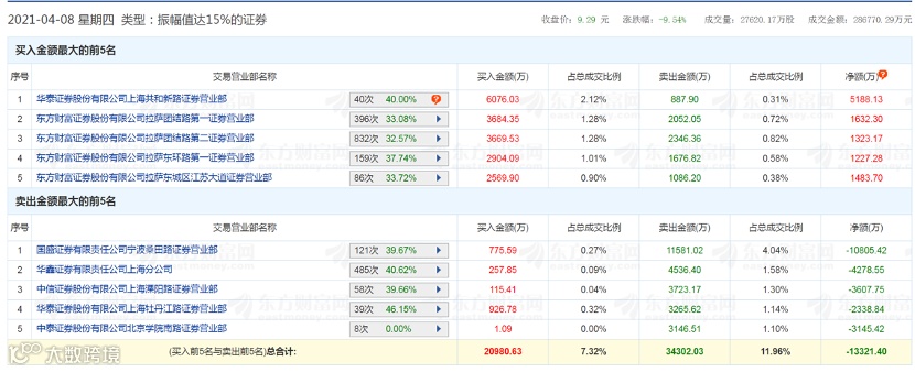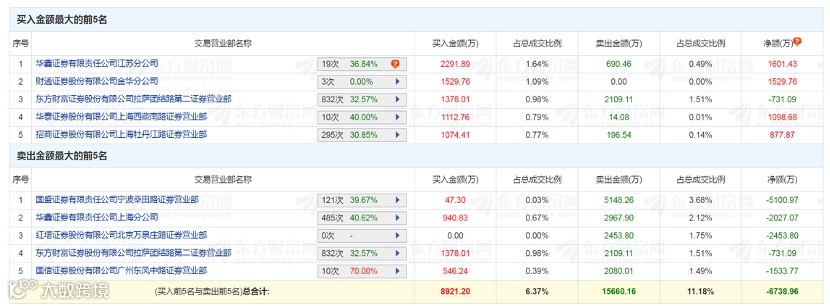 在卖出前五席位中,国盛证券宁波桑田路证券营业部、华鑫证券上海分公司、中信证券上海溧阳路证券营业部、华泰证券上海牡丹江路证券营业部、中泰证券北京学院南路证券营业部分别净卖出1.08亿元、4278.55万元、3607.75万元、2338.84万元、3145.42万元。在卖出前五席位中,除中泰证券北京学院南路证券营业部外,其他4个席位均在4月1日出现在买入前五席位中。