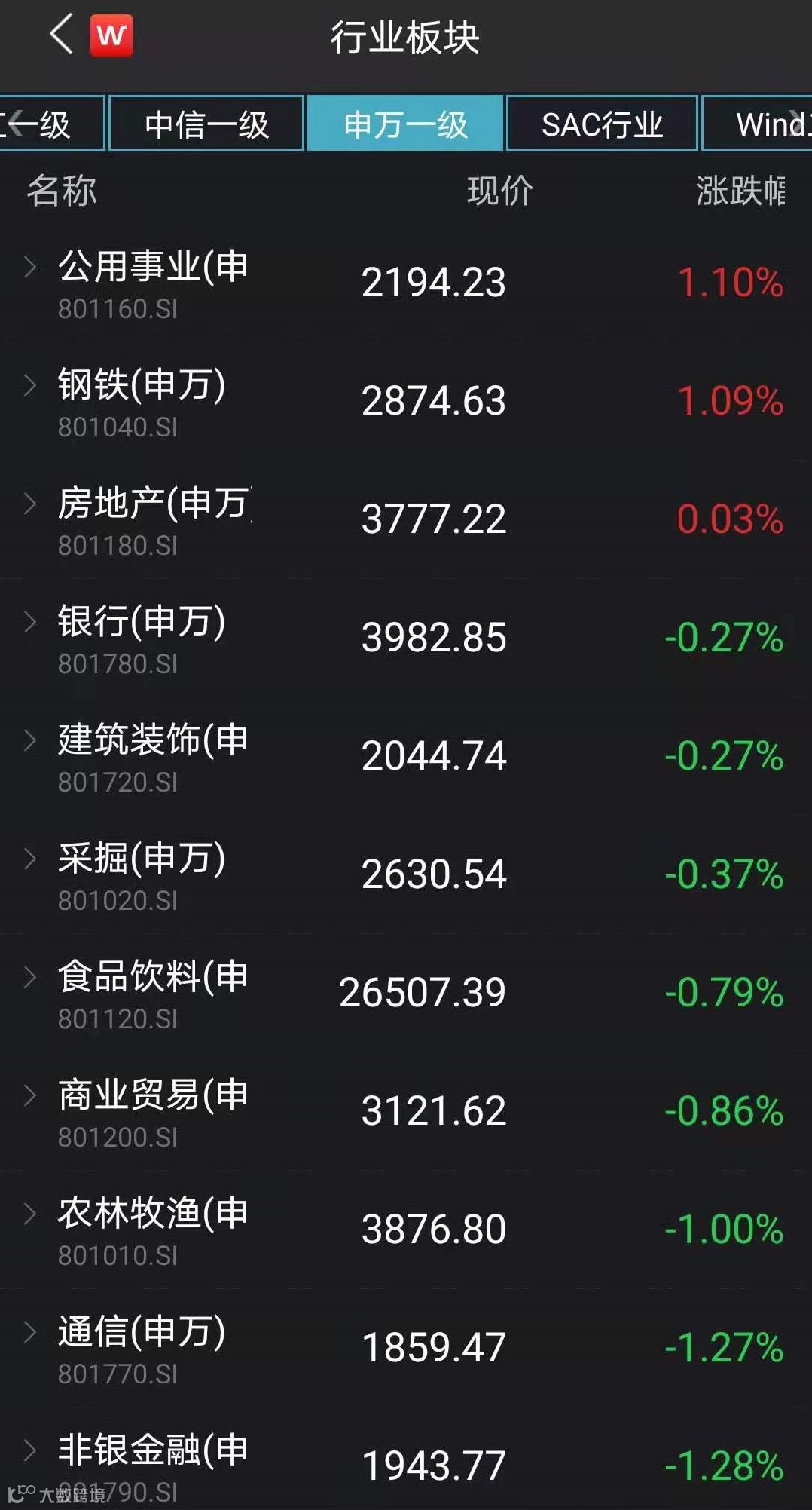 从板块看,28个申万一级行业中,仅公用事业、钢铁收涨逾1%,房地产板块微涨,有色金属、轻工制造、化工三大板块跌幅均超过3%。国防军工、医药生物、电子等成长板块跟跌。