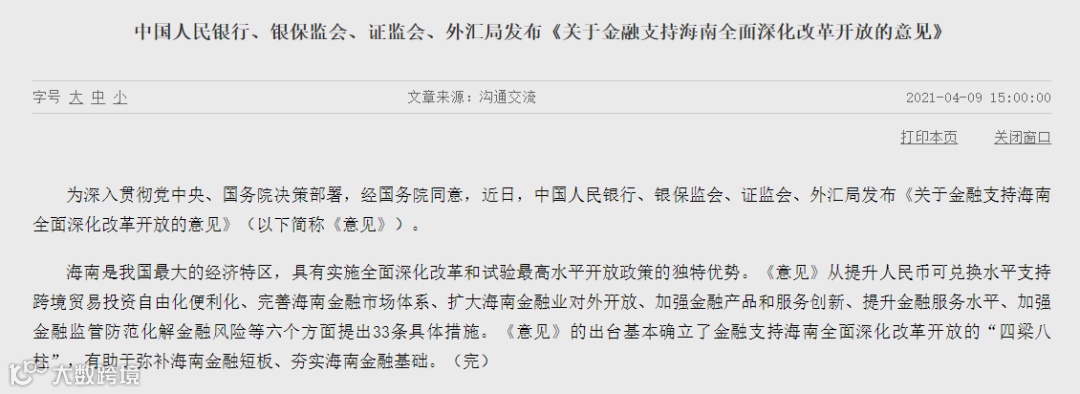 33条金融举措支持海南全面深化改革开放!