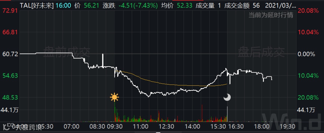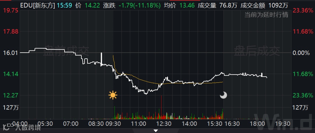 截至收盘,跟谁学收跌逾41%,新东方跌超11%,好未来跌超7%;老虎证券、知乎均跌逾11%,爱奇艺收跌逾13%,唯品会收跌逾2%,腾讯音乐收跌逾1%。此外,阿里巴巴盘中一度转跌,不过最终收涨逾2%;百度收涨近2%;腾讯ADR和京东则全天保持涨势,收涨均逾4%。