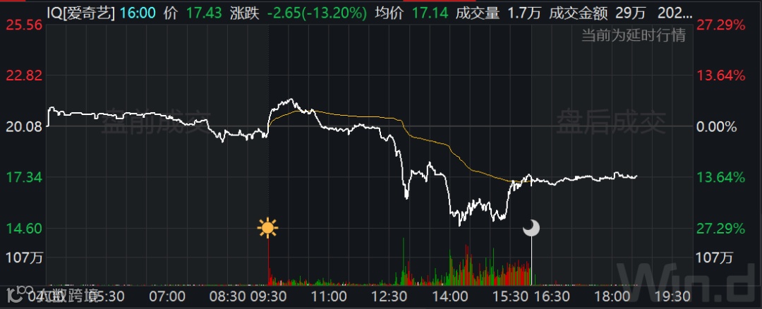 美股开盘后,多只热门中概股出现暴跌行情,但在尾盘出现拉升。盘中爱奇艺一度跌近30%,唯品会跌超20%,腾讯音乐跌近20%,百度跌近15%;盘中三大课外培训机构跟谁学(GSX)跌超50%,新东方(EDU)跌超20%,好未来(TAL)跌近20%。