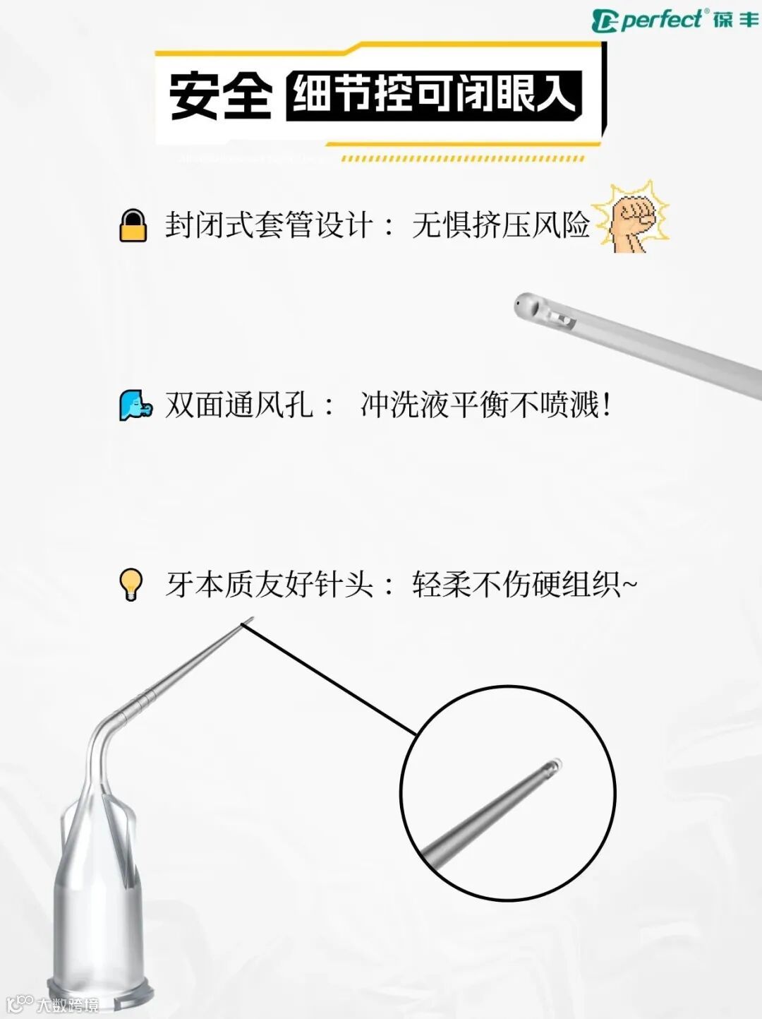 → 聚丙烯圆滑针头VS金属锐边=牙本质友好 不刮损