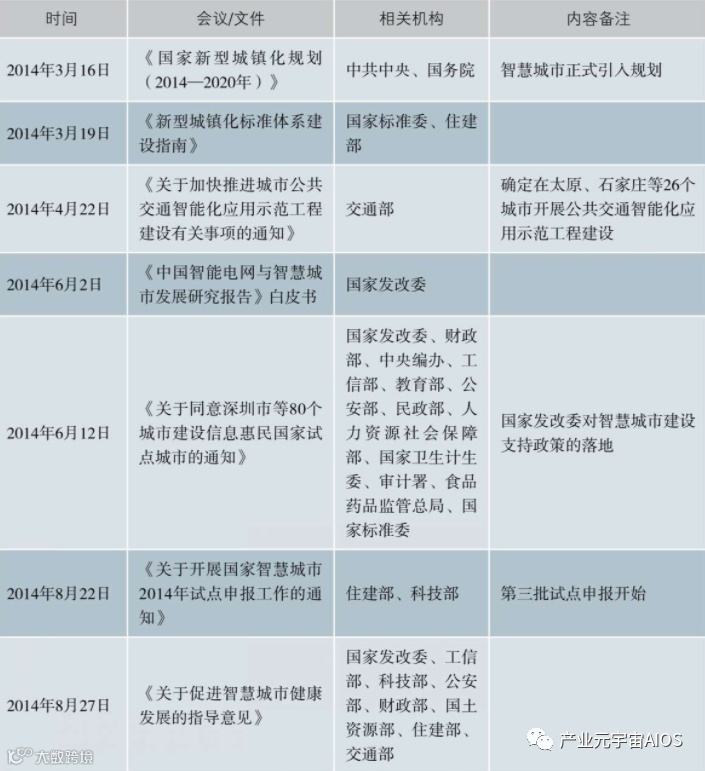 2014年3月,国务院印发《国家新型城镇化规划(2014—2020年)》,明确要求推进智慧城市建设,统筹城市发展的物质资源、信息资源和智力资源利用,推动物联网、云计算、大数据等新一代信息技术创新应用,实现与城市经济社会发展的深度融合,为中国智慧城市发展绘制了路线图。