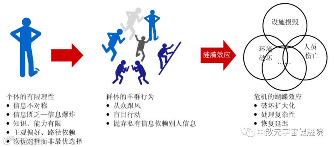 研究以往公共安全事件,我们都会发现,公共安全事件中的行为个体由于有限理性,往往都会导致群体的羊群行为,从而表现出群体的无序与混乱。