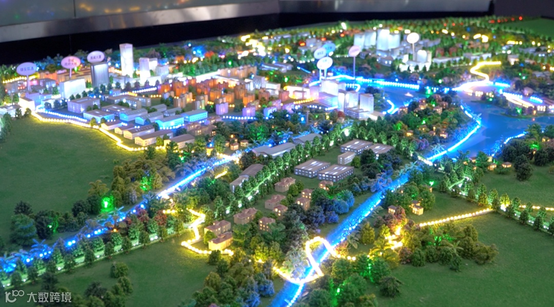 中国联通展示的雄安新区数字孪生网络模拟沙盘 实习记者 耿楚晴 摄