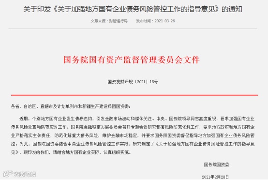 去年12月2日,陕西省国资委发布了《省国资委关于进一步加强监管企业债券融资管理防控债务风险的通知》。