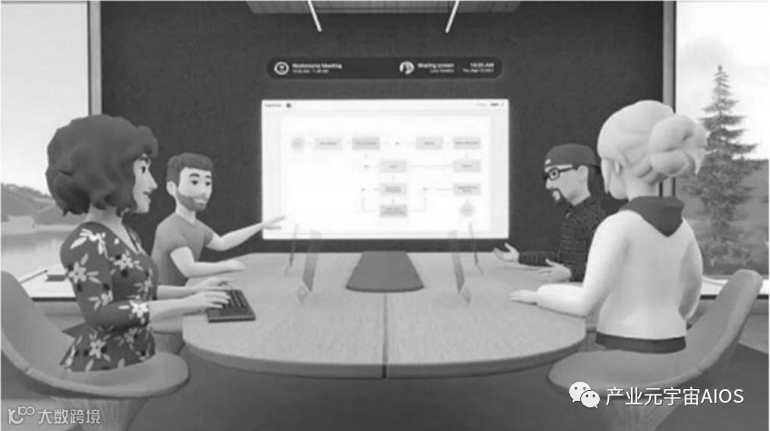 指的是把大部分目前政务相关的业务和活动,全仿真地移植到线上元宇宙中来,比如,远程会议,参会人员可能在物理空间上处于不同的位置,但是可以通过元宇宙空间服务,让大家可以面对面地在会议桌上沟通交流,甚至可对看到彼此的表情变化,如图30-2所示。