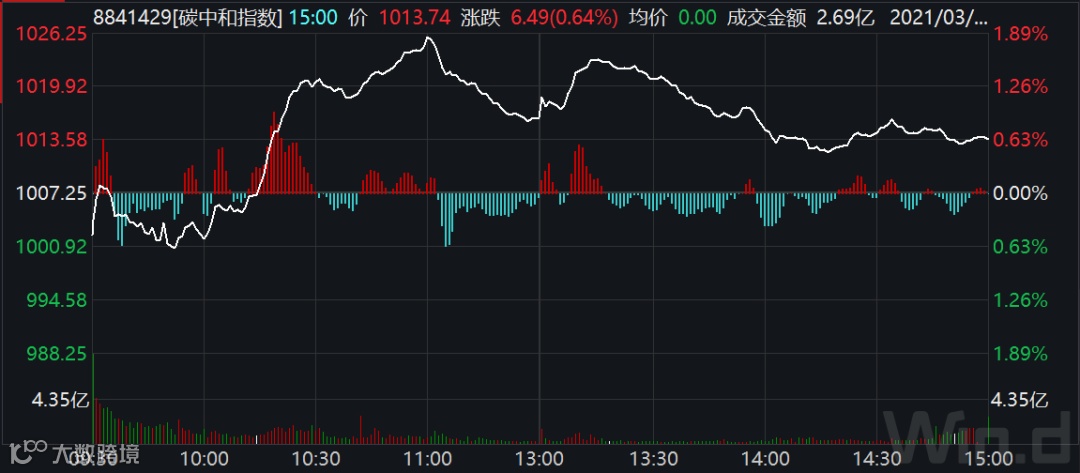 Wind碳中和指数收涨0.64%,但走势分化,成分股跌多涨少,其中南网能源、西昌电力涨停,同兴环保、南大环境等跌幅居前。