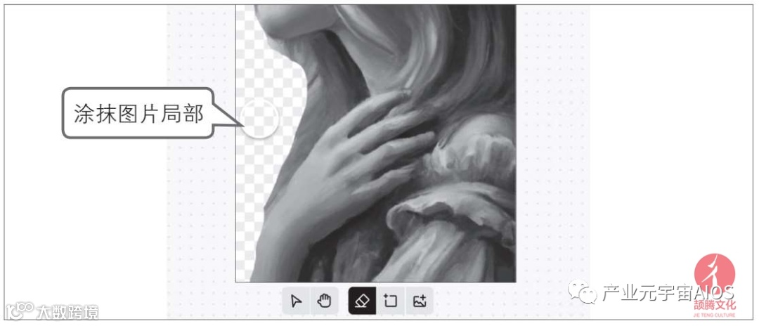 单击图片将其放大显示,选择下方的橡皮擦工具,擦除图片的背景,如下图所示。