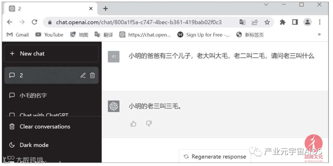 但是在下图中,我们在新建的对话组“2”中询问同一个问题,ChatGPT给出的仍不是我们想要的答案。