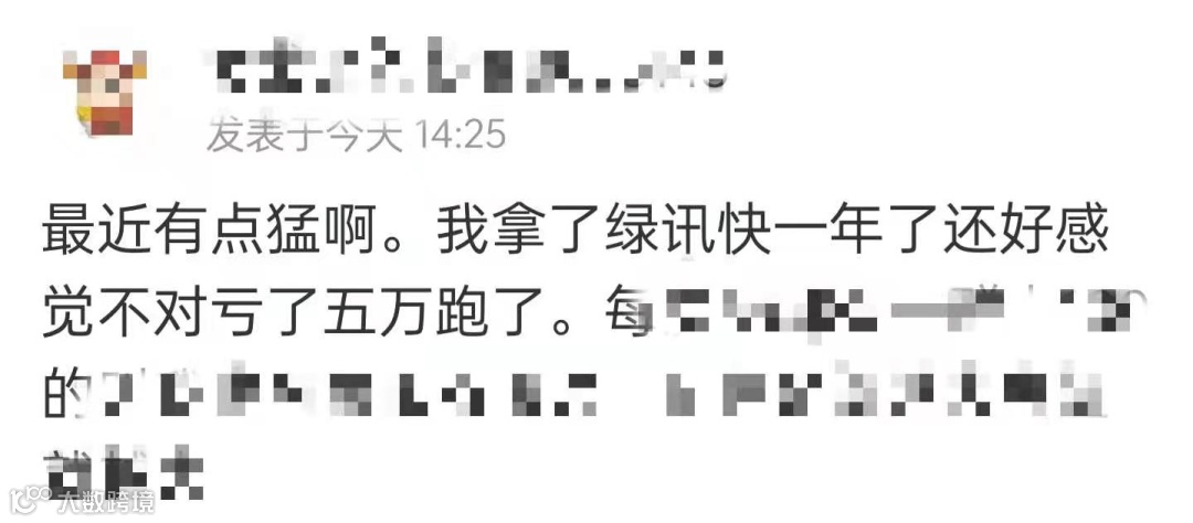 一位股民在股吧留言说:“48元抄底,抄到现在38元,不敢(抄)了,我真的不敢了。”另一位股民称:“我从57元入的,一路补,补到45元没‘子弹’了,现在一天丢5万元。”某股民说:“我拿了绿讯快一年了,还好感觉不对,亏了5万元跑了。”