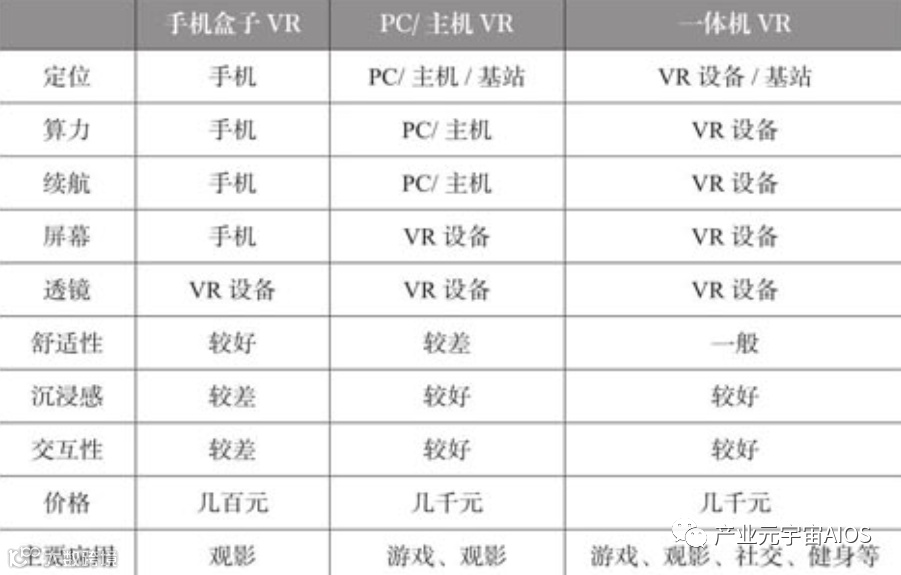 图 6-2 VR 设备分类及对比