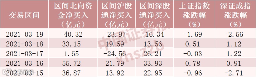 Choice数据显示,3月15日北向资金净流入36.87亿元,3月16日净流入55.72亿元,3月17日净流入1.65亿元,3月18日净流入33.15亿元,3月19日净流出40.32亿元。