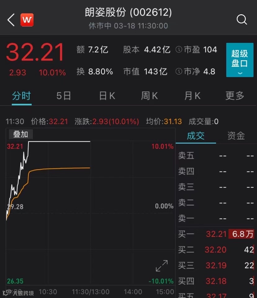 板块内,朗姿股份低开后迅速走高,盘中涨停。截至午间收盘,朗姿股份最新总市值为143亿元。