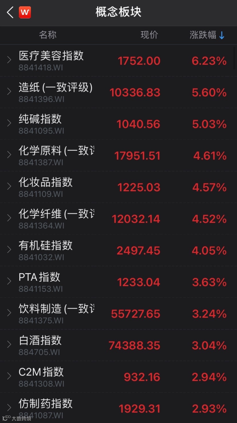 除了白酒板块外,医疗美容板块今日盘中崛起,表现较为亮眼。据Wind数据,截至午间收盘,医疗美容概念板块大涨6.23%,领涨Wind概念板块。